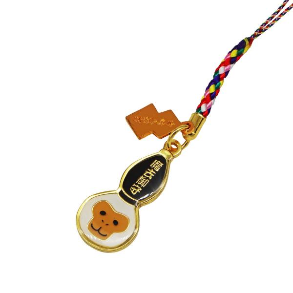 この瓢箪型の御守には、表には猿が描かれ、裏には五つの瓢箪が彫られており、