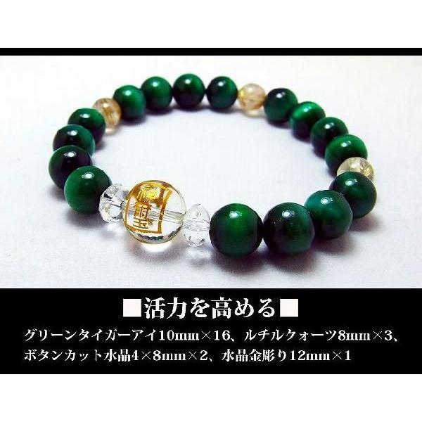 活力を高める グリーンタイガーアイ&ルチルクォーツメンズパワーストーンブレスレット水晶神璽金彫り