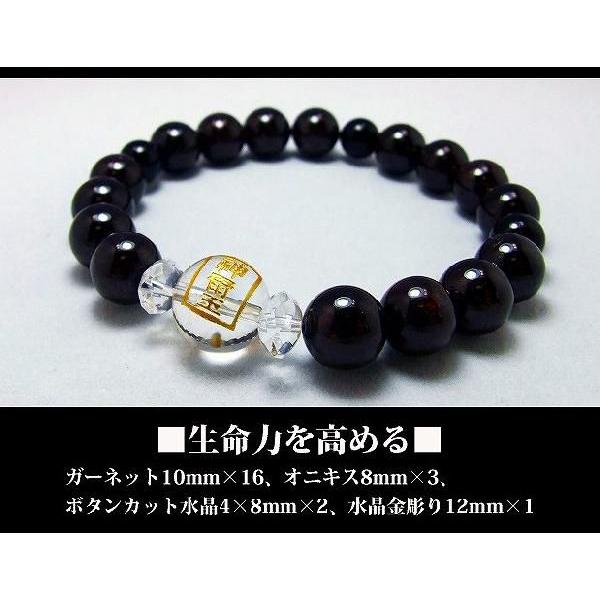 生命力を高めるガーネット&オニキスメンズ パワーストーンブレスレット水晶神璽金彫り