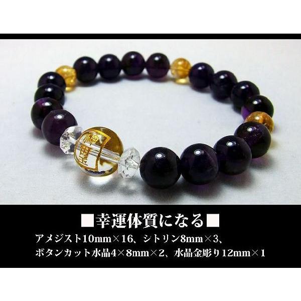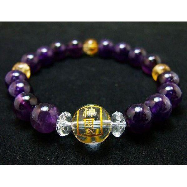 幸運体質になる アメジスト&シトリン 水晶神璽金彫りパワーストーン ブレスレット メンズ