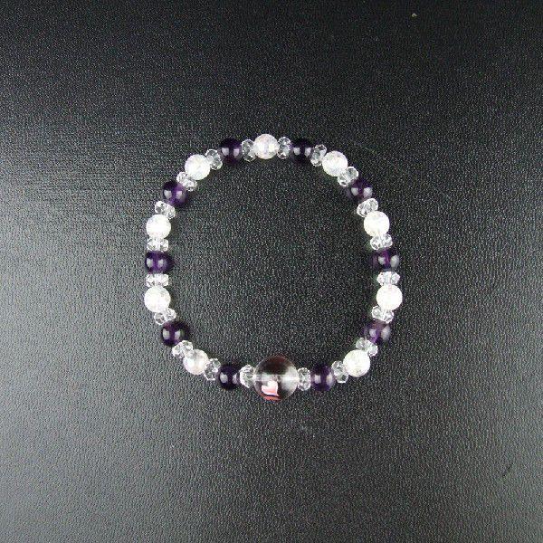 精神を安定・調和させ、良い人間関係を築く効果がある「アメジスト」を使用したレディースブレスレットお守りです。また、「紫」はインスピレーションと感性を表す神秘的な色で、癒しの力、直感的表現力、豊富な想像力を与えてくれる効果があります。