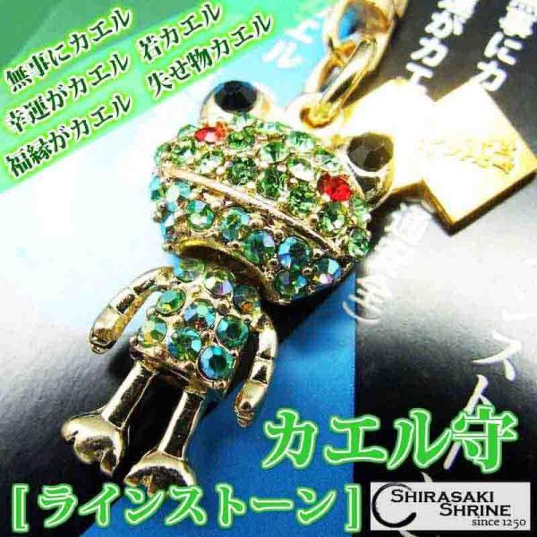 カエル ラインストーンお守り 無事かえる 若がえる キーホルダー 白崎八幡宮で祈願済み