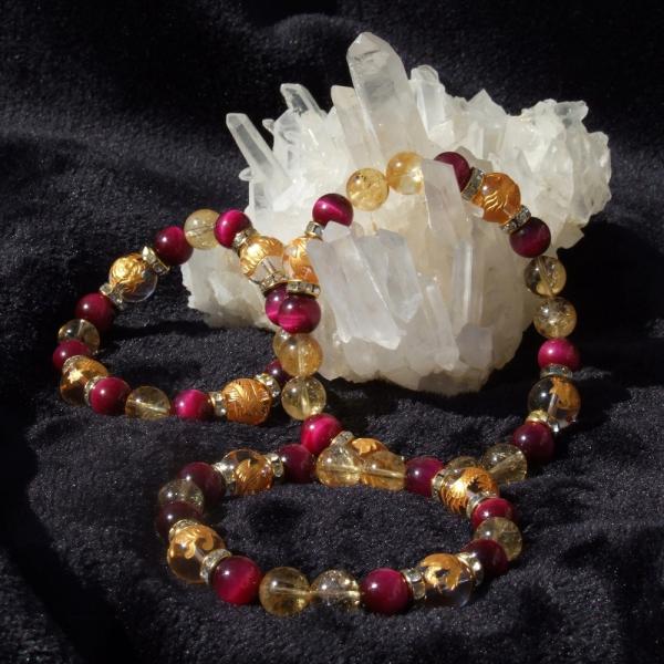 開運 風水四神獣 シトリン×ピンクタイガーアイ 高級桐箱付き 神社で祈願済み パワーストーンブレスレット/メンズ/レディース