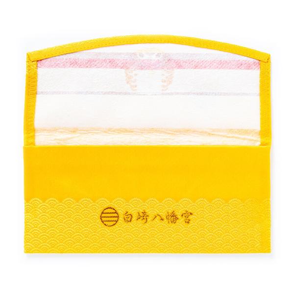 白崎の大神とえびす神社の御祭神「事代主神(ことしろぬしのかみ)」のご神徳を神さまと願主様との仲取り持ちとして神職が入魂祈願し、願主様に金運・財運をもたらすよう祈願したお守りです。