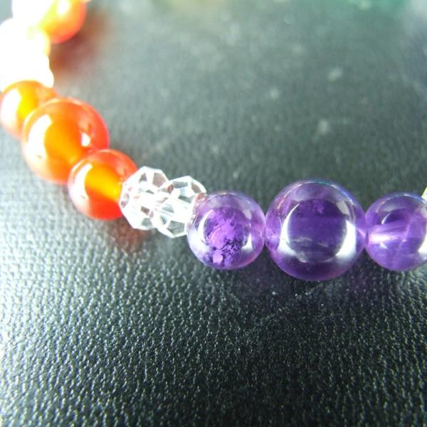 8ミリ玉と6ミリ玉で赤天眼石・赤メノウ・アメジスト・青メノウ・ソーダライト・緑メノウ・シトリンと3×5ミリのカット水晶。