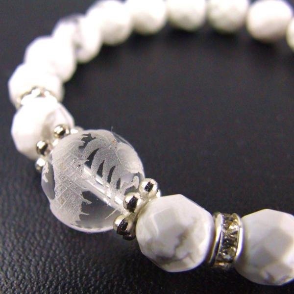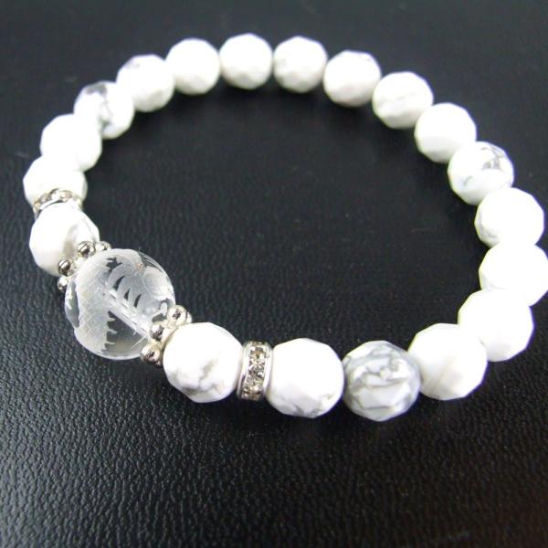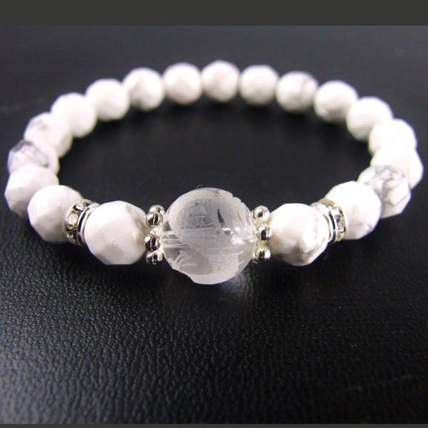 運気上昇 仕事運向上 一粒パワーストーンブレスレット 水晶手彫り龍&ハウライト レディース 祈願済み