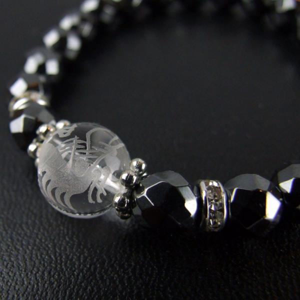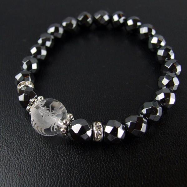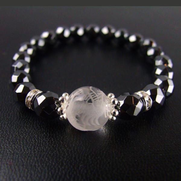 運気上昇 仕事運向上 一粒パワーストーンブレスレット 水晶手彫り龍&ヘマタイト レディース 祈願済み