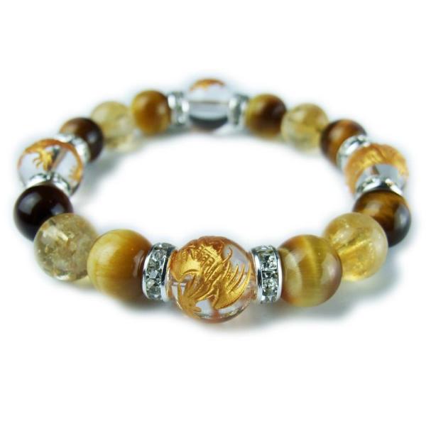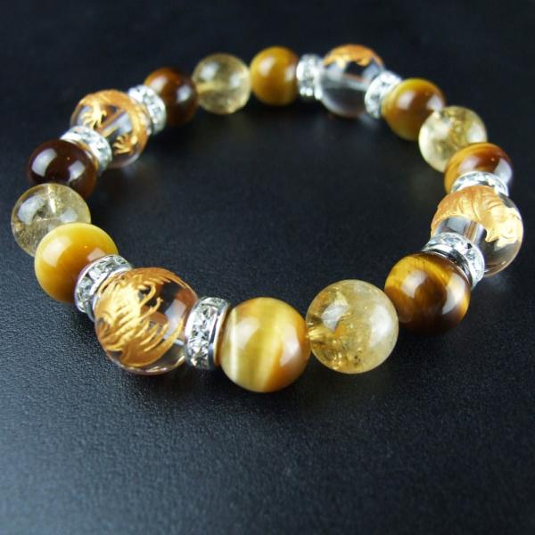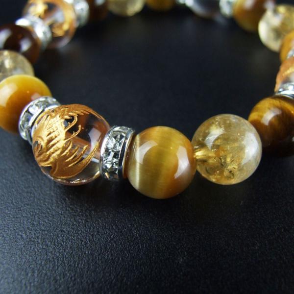 一攫千金 金運のパワーストーンブレスレット 四神水晶金彫り×ゴールドタイガーアイ×シトリン×タイガーアイ 開運 神社で祈願済
