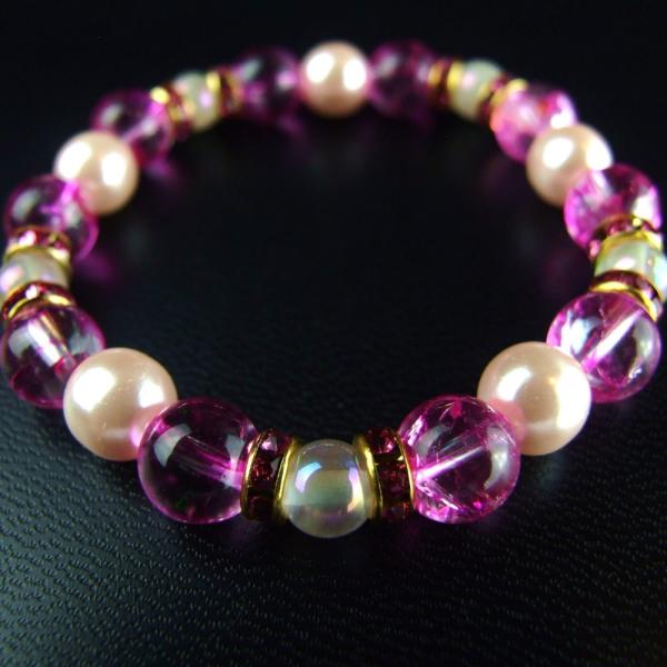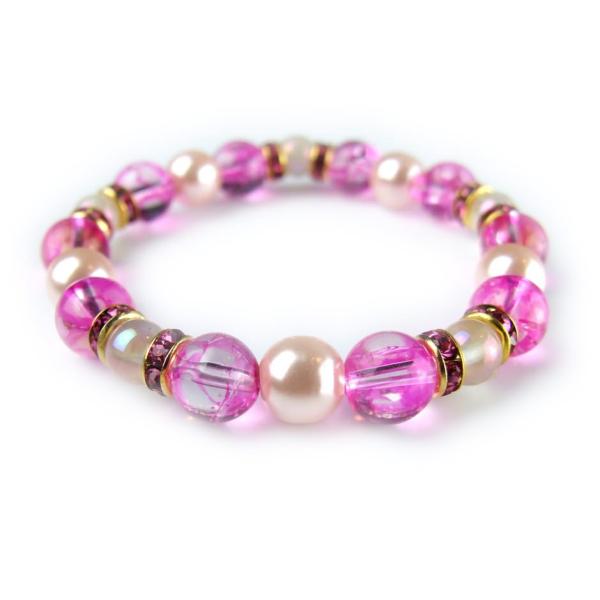 幸運来福/愛され力アップ ピンクパール(樹脂)×ピンククラック水晶×ローズクォーツオーラ 巫女ブレスレット 開運 神社で祈願済