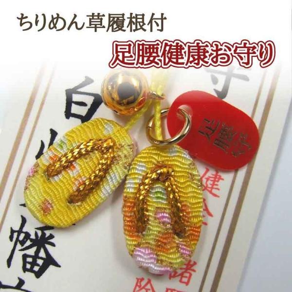 足腰健康お守り イエロー ちりめん草履根付 岩国に鎮座する神社白崎八幡宮で祈願済み