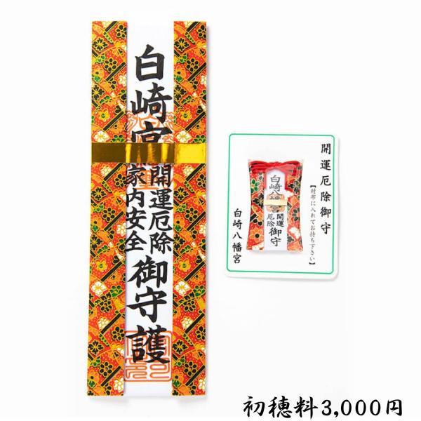 お申込みをいただいた後、大安の佳き日に白崎八幡宮のご神前にて、白崎八幡宮のご祭神であらせられる應神天皇・神功皇后・仲哀天皇をはじめとし、境内末社の猿田彦神社に鎮座する「みちびきの神さま猿田彦大神」及び劔神社に鎮座する「勝利の神さま武甕槌大神」のご神徳をお頒ちし、皆様の開運厄除祈願をご奉仕いたします。