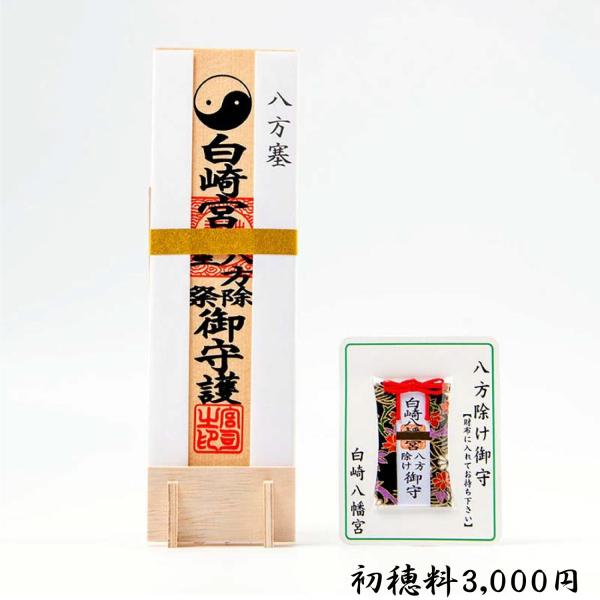 お申込みいただいた後、大安の佳き日に白崎八幡宮のご祭神であらせられる應神天皇・神功皇后・仲哀天皇をはじめとし、境内末社の猿田彦神社に鎮座する「みちびきの神さま猿田彦大神」のご神徳をお頒ちし、皆様の八方除祈願をご奉仕いたします。