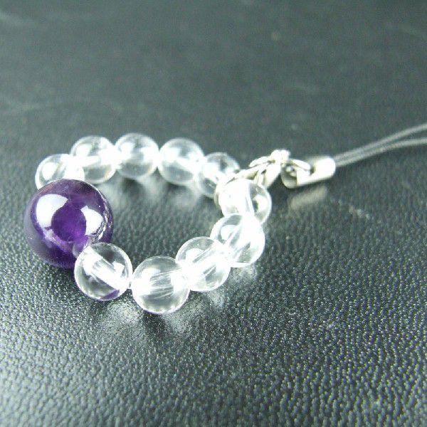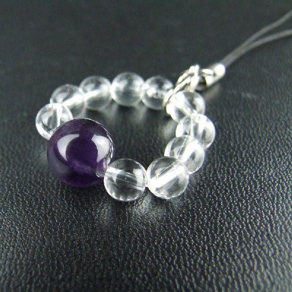 冷静な判断力をもたらす アメジスト 2月の誕生石 輪形パワーストーンストラップ 神社で祈願済み
