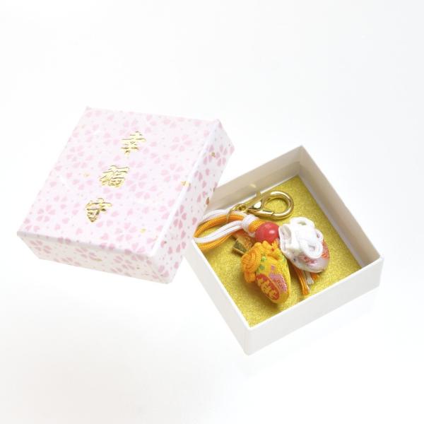 お守り チャーム ツインチャーム 幸福守 イエロー&ホワイト 岩国に鎮座する神社白崎八幡宮で祈願済