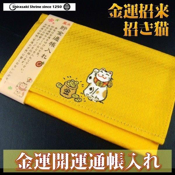 金運を招く『招き猫』が入った貯金通帳入れです。あなたの通帳にも金運を招きますように。