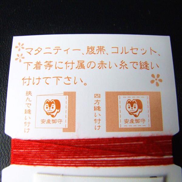◆マタニティー・腹帯・コルセット・下着など、身近なものに付属の赤い糸で縫い付けるタイプの安産お守りです。プレゼントにされても良いのではないでしょうか。