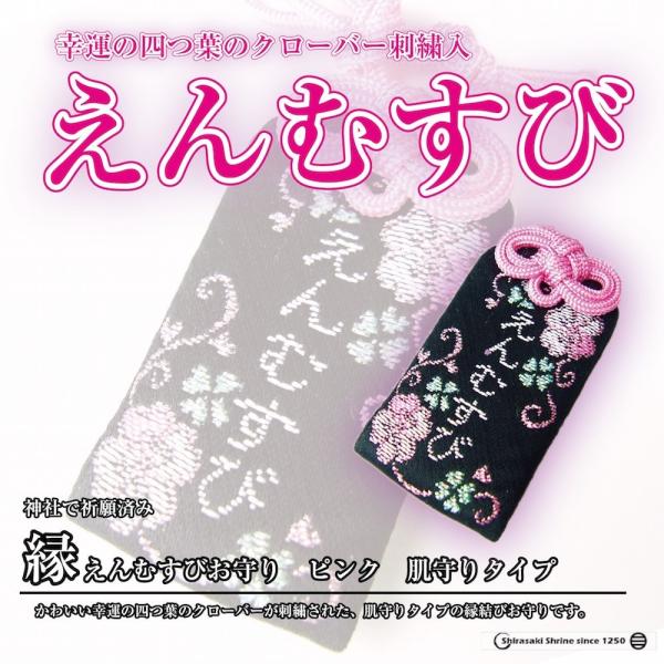 恋愛 縁結び 神社のお守り祈願済み えんむすび肌お守り袋 ピンク 白崎八幡宮