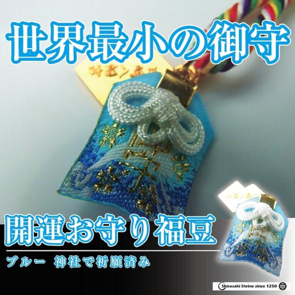 開運 お守り 福豆 ブルー色 世界最小 岩国に鎮座する神社白崎八幡宮で祈願済