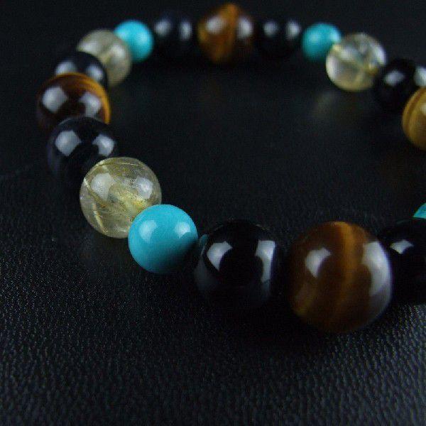 誕生石 パワーストーン ブレスレット メンズ ターコイズ ルチルクォーツ使用 12月誕生石 祈願済