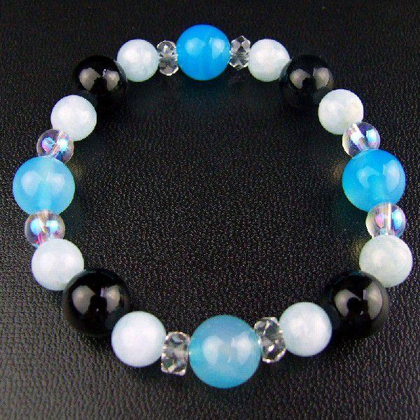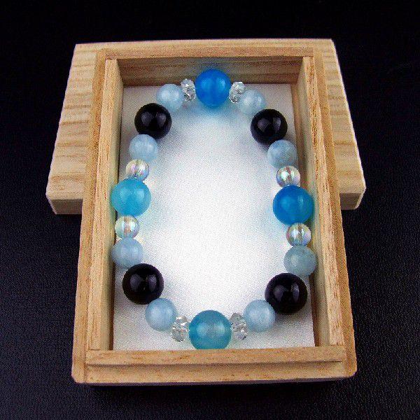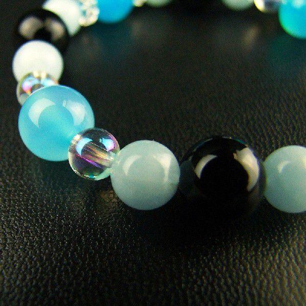 誕生石 パワーストーン ブレスレット レディース オニキス ブルー系8月生まれ 祈願済