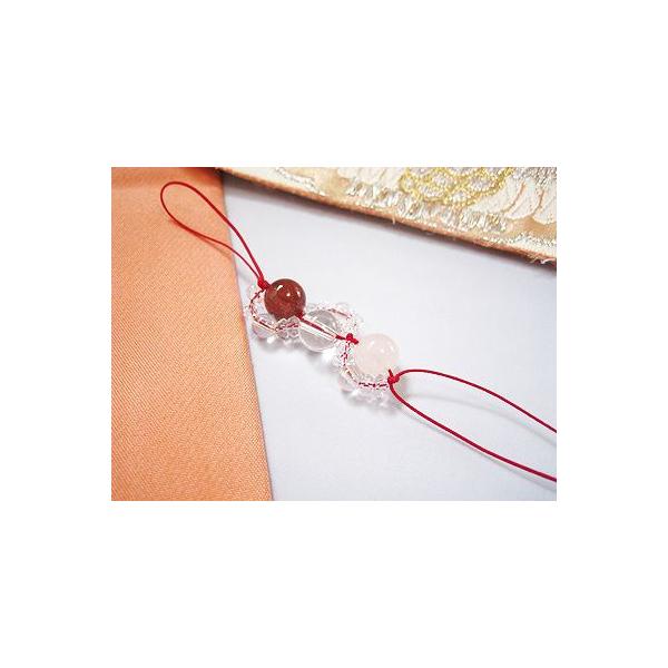 子授け パワーストーン三連ストラップ 神社で祈願・祓い清め済み レッドルチル&ローズクォーツ/かわいい赤ちゃんを授かりますように!