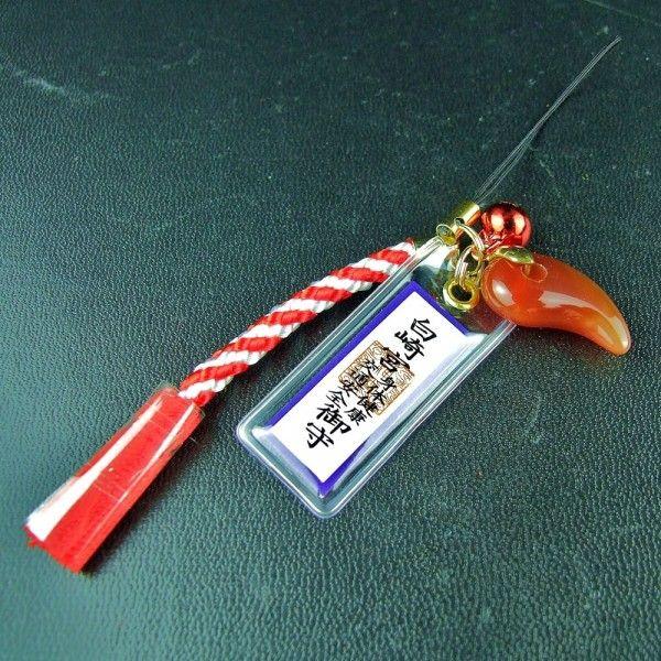 ■勾玉と厄除けの鈴、そしてかわいい房のついたストラップお守りです。ケータイやお財布、車の鍵などに付けてお持ちください。