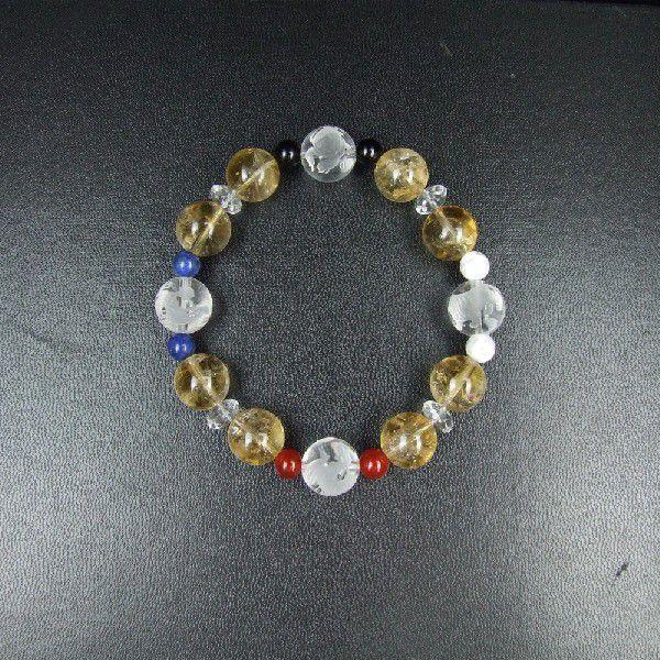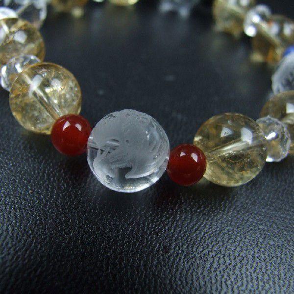 金運上昇 開運風水四神 パワーストーン ブレスレット メンズ シトリン 四神水晶彫り 12mm玉 神社で祈願済み