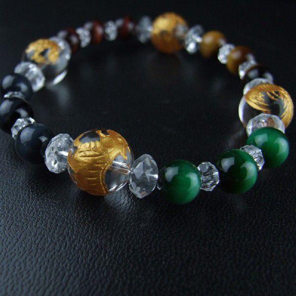 開運風水四神ブレスレット タイガーアイ(四種) 四神水晶金彫り 12mm玉 サイズ男女兼用 神社で祈願済み