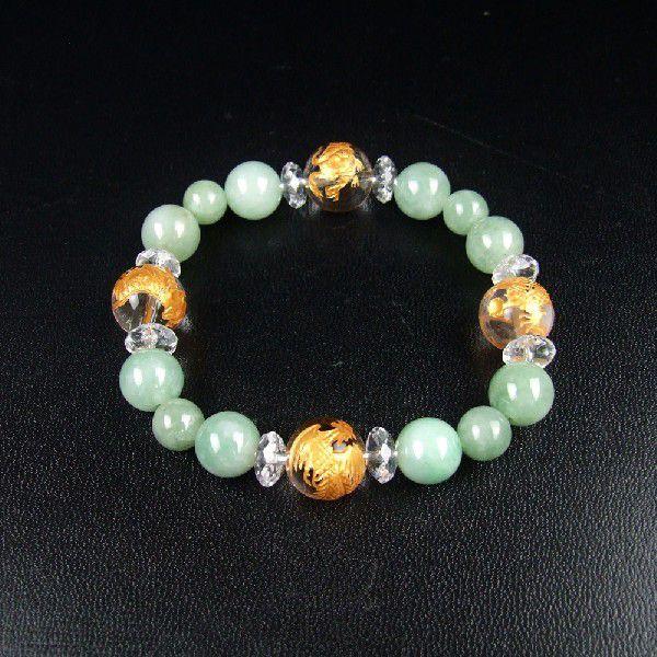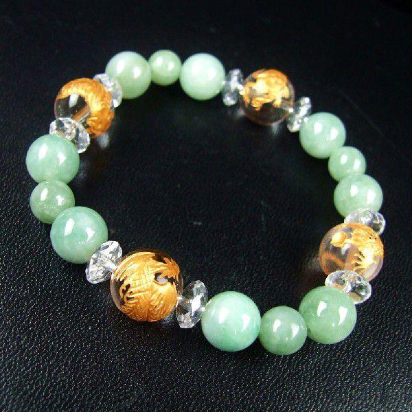 開運風水四神 パワーストーン ブレスレット レディース ジェイド(翡翠) 四神水晶金彫り 12mm玉