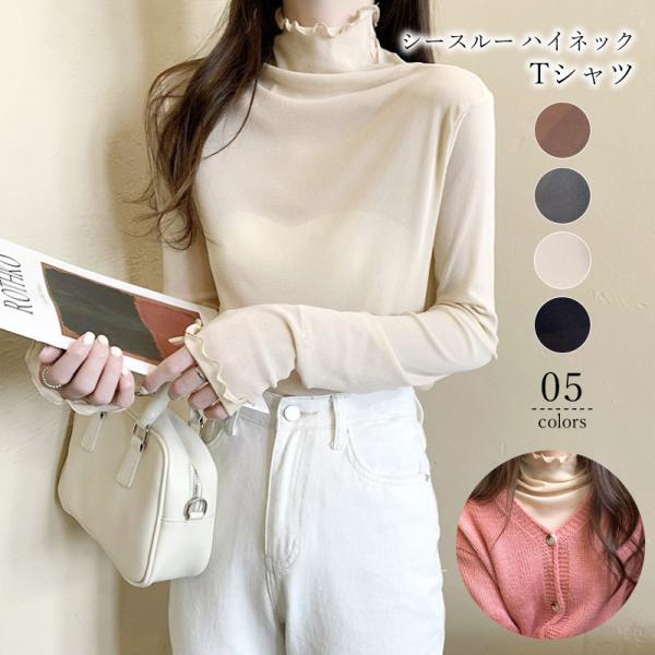 【2枚購入で200円OFFクーポン】tシャツ レディース 長袖 カットソー シースルー ハイネック シアートップス インナー トップス 重ね着 透け感 秋冬