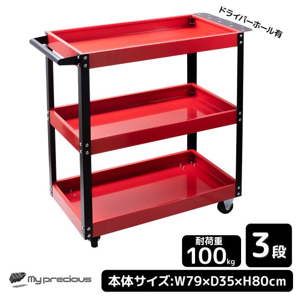 工具カート ドライバーホルダー付き ★3段 ツールカート 工具台車 三段 ワーキングカート/ 360℃回転キャスター スチール製 ツールワゴン 作業台