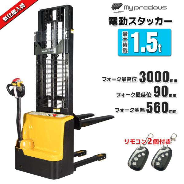 期間限定セール ★安心1年保証 自走式電動スタッカー 1.5t 電動フォークリフト 電動昇降 荷重1500kg 最高位3m フォーク幅560mm /運搬台車 倉庫
