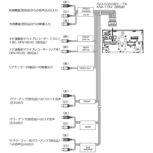 ケンウッドのカーナビにリアモニター出力などのAV入出力を拡張。