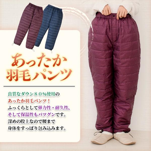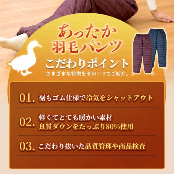 羽毛 防寒 パンツ ズボン 和風 下半身 あったか 贈り物に