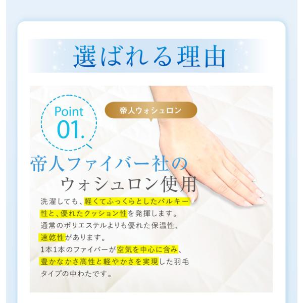 ・中わたに帝人製のウォシュロン・エコを100%使用
