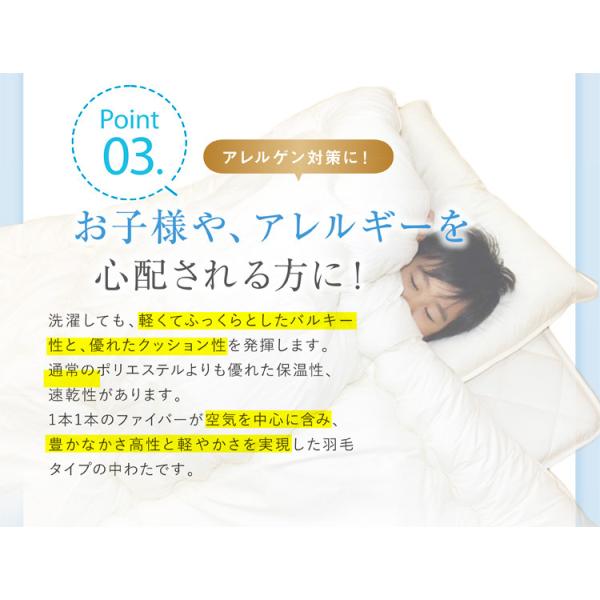 中わた 巻きわた:ポリエステル100% 中芯:ポリエステル100%(固わた使用)重量約3.0kg《日本製》日干し、または陰干しなさることをおすすめします。(ただし真夏の直射日光はおさけください)