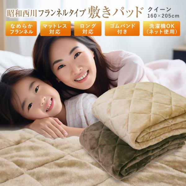 敷きパッド 昭和西川 クイーン 160×205cm 秋冬用 あったか フランネルタイプ 暖か敷きパッド ブラウン アイボリー ベッドパッド ベットパッド