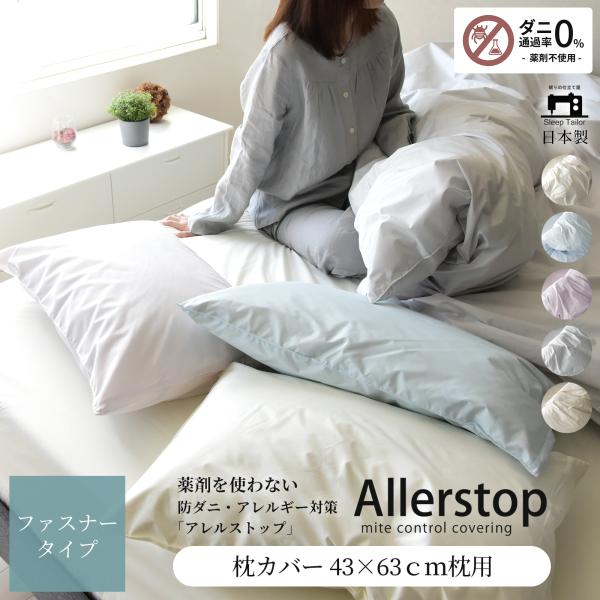枕カバー 防ダニ 43×63cm枕用 日本製 ダニ通過0% アトピー アレルギー 花粉症対策 アレルストップ 冬 あったか