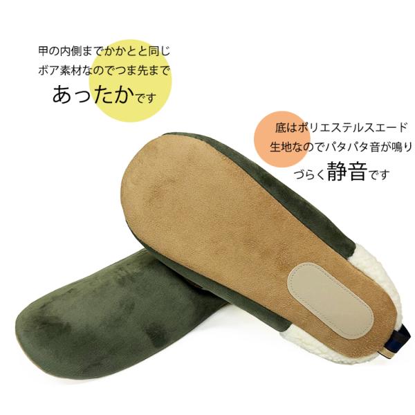 甲には光沢感のある起毛生地を使用。中板はコーデュロイ、甲裏ボアであったかい。