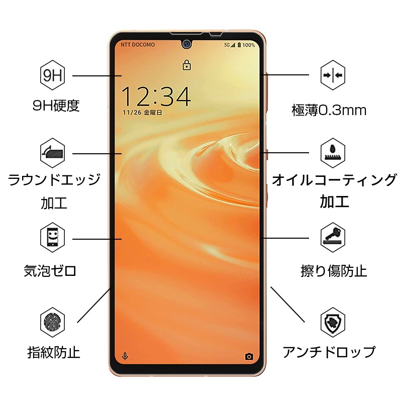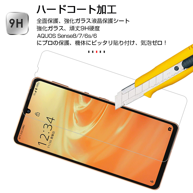 AQUOS sense8/7/sense6/6s 強化ガラス保護フィルム SHG05/SH-54B/SH-M19/SH-RM19/SHG07/SH-53C/SHG10 液晶画面保護 耐衝撃 指紋防止 防水防滴 防汚
