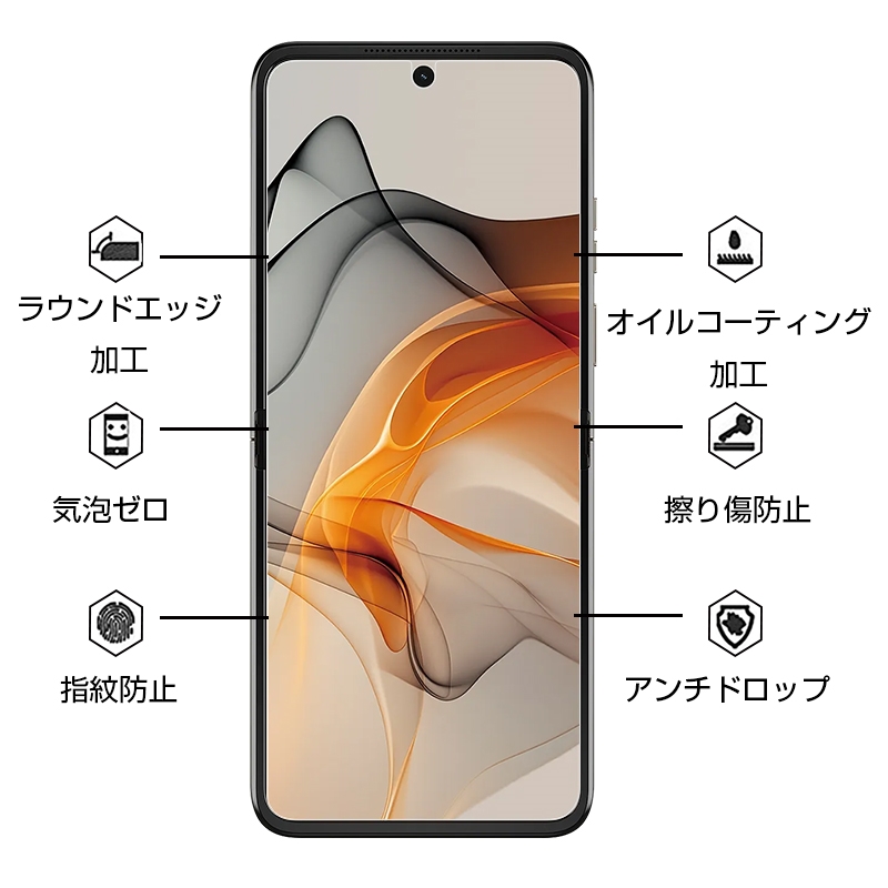 【指紋防止】撥水性および疎油性のスクリーンコーティングにより、汗、油の残留物、指紋から保護され、画面感度の低下はありません。