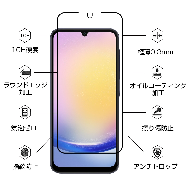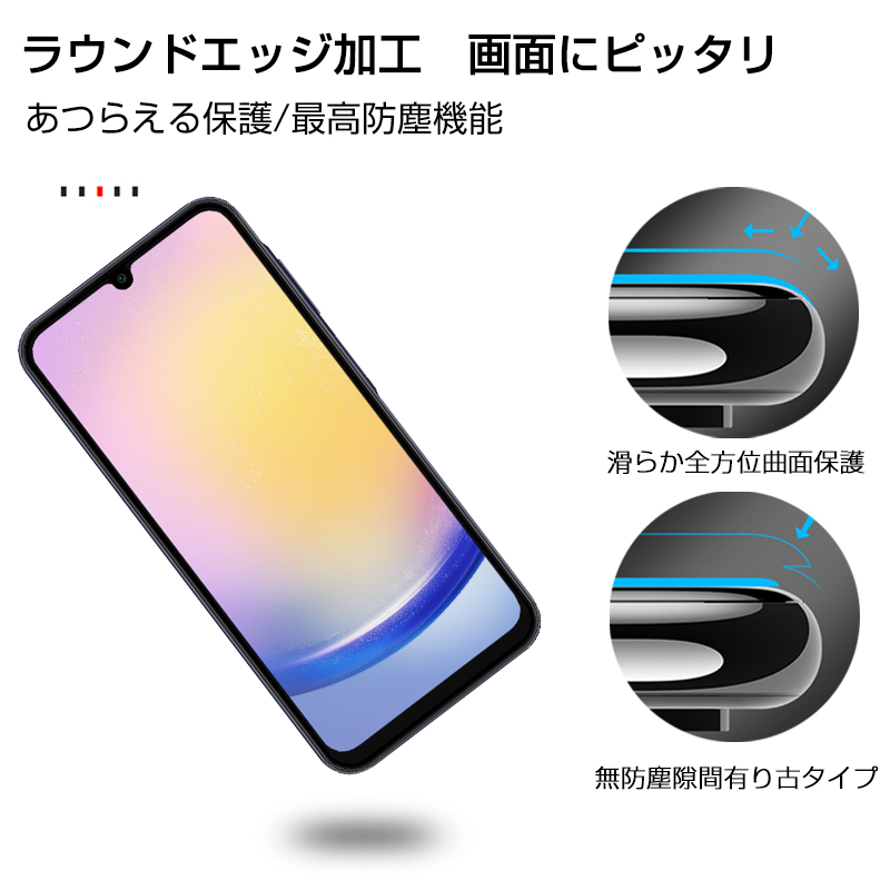 Galaxy A25 5G 液晶保護ガラスシール Samsungスマホ ギャラクシー 耐衝撃 傷防止 割れにくい 飛散防止 指紋軽減 耐スクラッチ性 摩擦防止 簡単貼り付け 気泡ゼロ