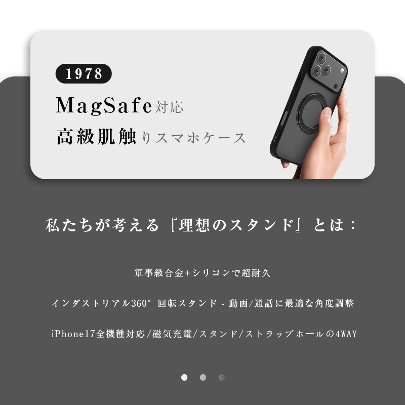iPhone 17/air/17 Pro/17 Pro Max 保護ケース MagSafe対応 折りたたみスタンド付き 360度回転 ハイブリッドケース 強力磁石 ワイヤレス充電 ソフトフレーム