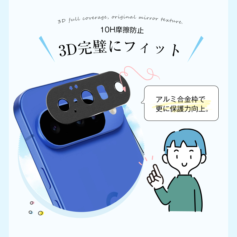 Google Pixel 10 カメラ保護フィルム 全面保護 グーグル ピクセル テン 高透過率 飛散防止 硬度10H ピッタリ 多色選択 摩擦防止 汚れにくい 耐衝撃 送料無料