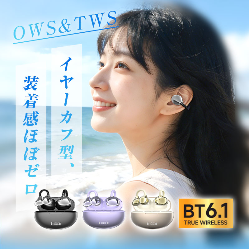 空気伝導式イヤホン Bluetooth 6.1 耳が痛くない TWS&OWS HiFi イヤーカフ型 低遅延 長時間持続 iPhone17対応 iOS/Android 軽量【PL保険加入済み製品・安心】
