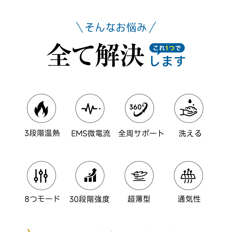 長時間のPC作業、スマートフォンの操作、育児や家事による手首の疲労や冷え、スポーツ後の筋肉痛など、現代人の生活には手首への負担が多くあります。この温熱EMSマッサージリストバンドは、手首専用の統合ケア製品です。日常的な手首の不快感を緩和し、手首の不調を抱えるすべての方に、専門的で快適なセルフケアの体験を提供します。