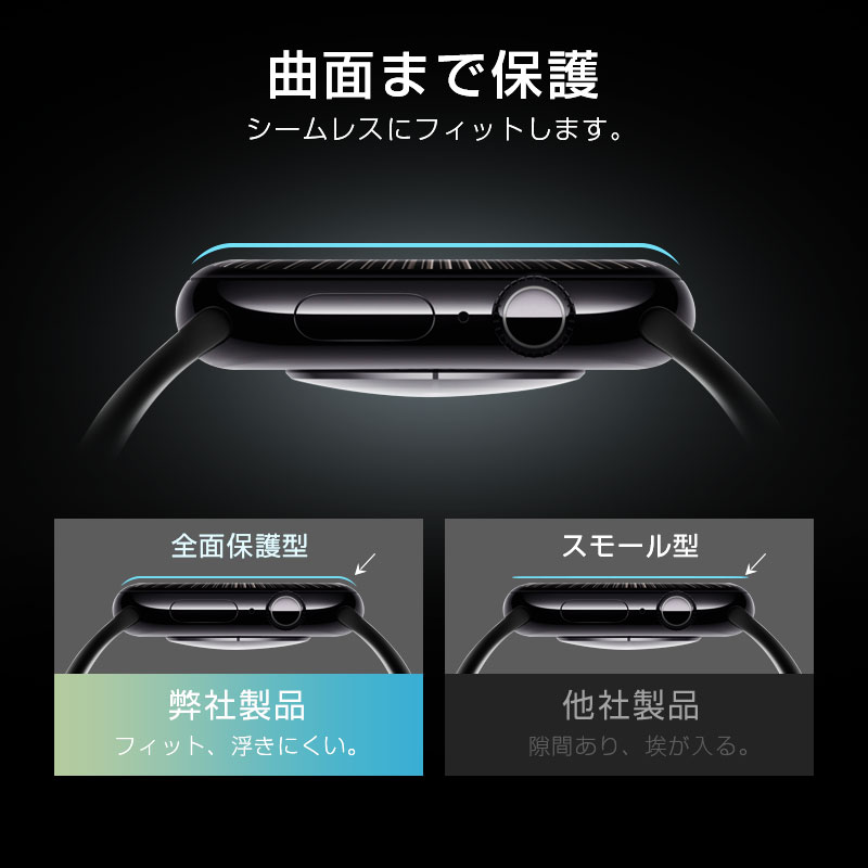 Apple Watch本来の美しさを損なうことなく、曲面までピッタリとフィットでしっかりと全面保護してくれる3D湾曲デザイン。