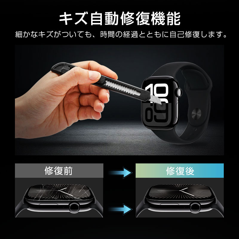 【2枚セット】 Apple Watch SE3 全面保護フィルム Apple Watch Series10/Apple Watch Series11 アップルウォッチ 補助キット付き 指紋防止 TPU 3D熱曲げ加工