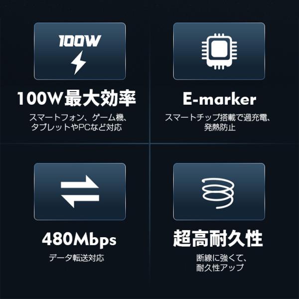 1m 2m USB C to C iPhone 17 pro Air 急速 充電ケーブル Type C 16e 15pro 100W 5A 480Mbps データ転送 E-marker スマートチップ搭載 超高耐久