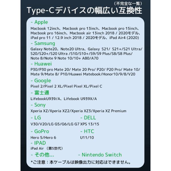 USB-Cに対応したスマホ、タブレット、ノートPC、ゲーム機及びその他のUSB-Cデジタル端末に充電とデーター伝送を対応します。▲映像出力は非対応です。